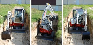 Deux ans plus tard, Akio Takeuchi se lance dans l’assemblage et réfléchit aux besoins de l’industrie de la construction. Pour lui, il importe de mécaniser les petits travaux, ce qui lui donne l’idée de proposer un “mini-godet” monté sur une machine capable de bouger par elle-même et de pivoter sur 360 degrés. Dans un premier temps, il est exploité commercialement par de grandes firmes pour lesquelles il travaille.